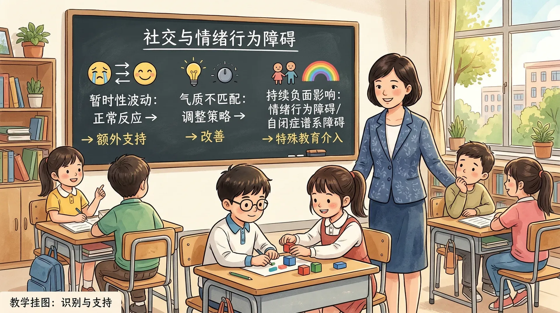 学生在经历重大生活压力或变化时,出现一些暂时性的情绪或行为波动是正常的,这类情况通常不需要特殊教育介入,只需要来自成年人和同伴的额外支持。还有一些行为问题,表面上看起来像是学生的性格问题,实际上可能是学生的气质特点与课堂教学风格不匹配的结果,通过调整教学策略往往能改善。