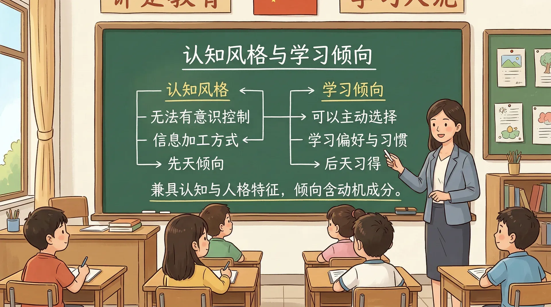 拥有相似智力水平的学生,在面对同一个学习任务时,往往会采用截然不同的方式来处理和思考。这背后涉及两个相关但有区别的概念:认知风格,指学生无法有意识控制的信息加工方式;学习倾向,则是学生可以主动选择和调整的学习偏好与习惯。两者都兼具认知特征和人格特征,倾向还包含明显的动机成分。