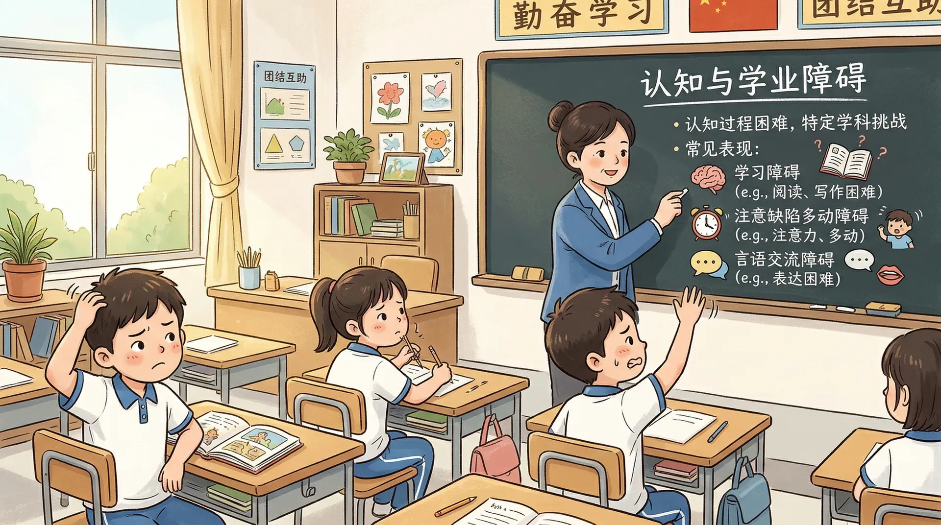 部分学生没有明显的身体障碍,但在某些认知过程上存在困难,影响了他们学习特定学科内容或完成特定课堂任务的能力。这类学生主要包括有学习障碍、注意缺陷多动障碍以及言语交流障碍的学生。
