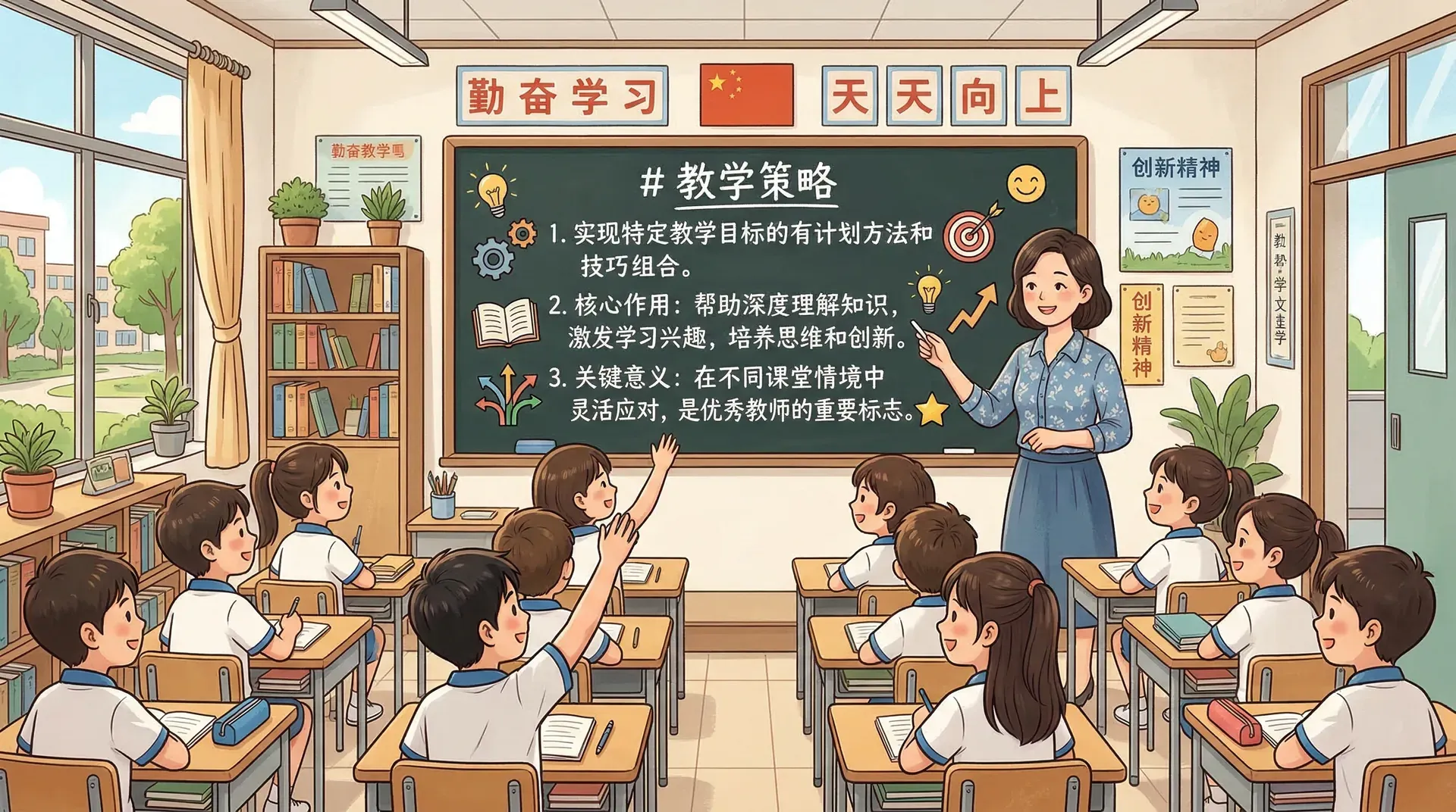 教学策略是教师为实现特定教学目标而采用的有计划、有组织的教学方法和技巧组合。有效的教学策略能够帮助学生更好地理解和掌握知识,激发学习兴趣,培养思维能力和创新精神。在教育改革背景下,选择合适的教学策略至关重要。一位教师掌握多种教学策略,能在不同的课堂情境中灵活应对,这是区分优秀教师与普通教师的重要标志之一。
