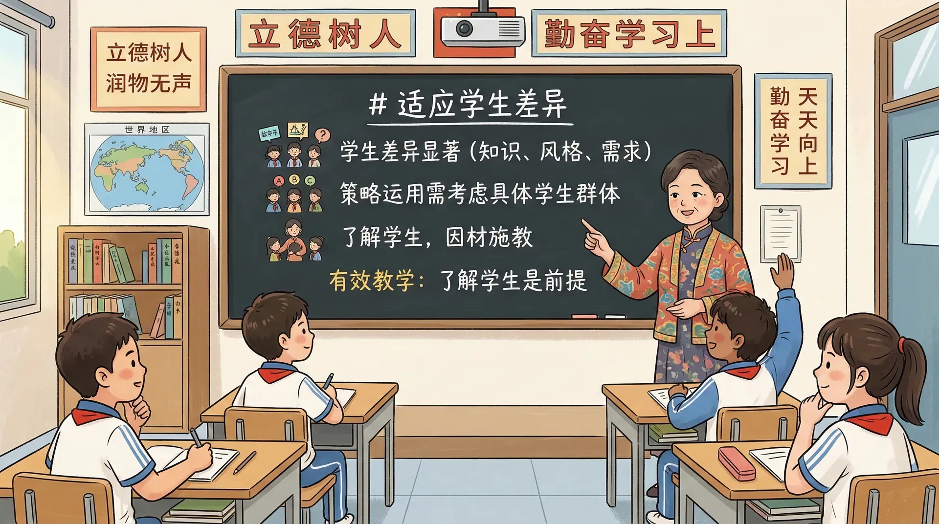学生在知识基础、学习风格、文化背景和个人需求上存在显著差异。一套在某个班级效果良好的教学策略,换到另一个班级可能并不适用。这不意味着教学策略没有普遍规律,而是意味着在运用这些策略时,必须考虑到具体的学生群体。有效教学的前提是了解学生,而不是把学生当作一个同质化的整体来对待。
