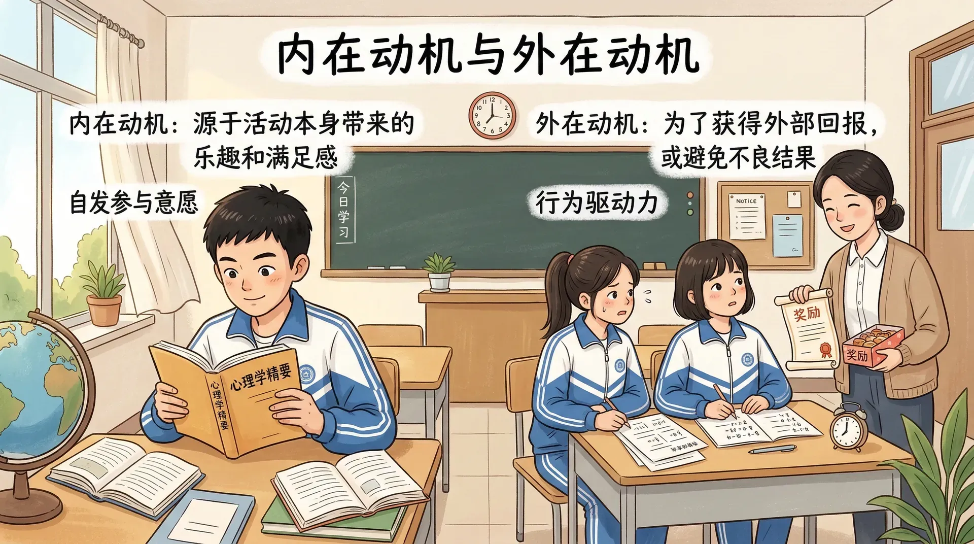 内在动机是因活动本身带来乐趣而产生的参与意愿,外在动机则是为了外部奖励或避免惩罚而产生的行为驱动。两者并不对立,但对学习质量的影响有所不同。