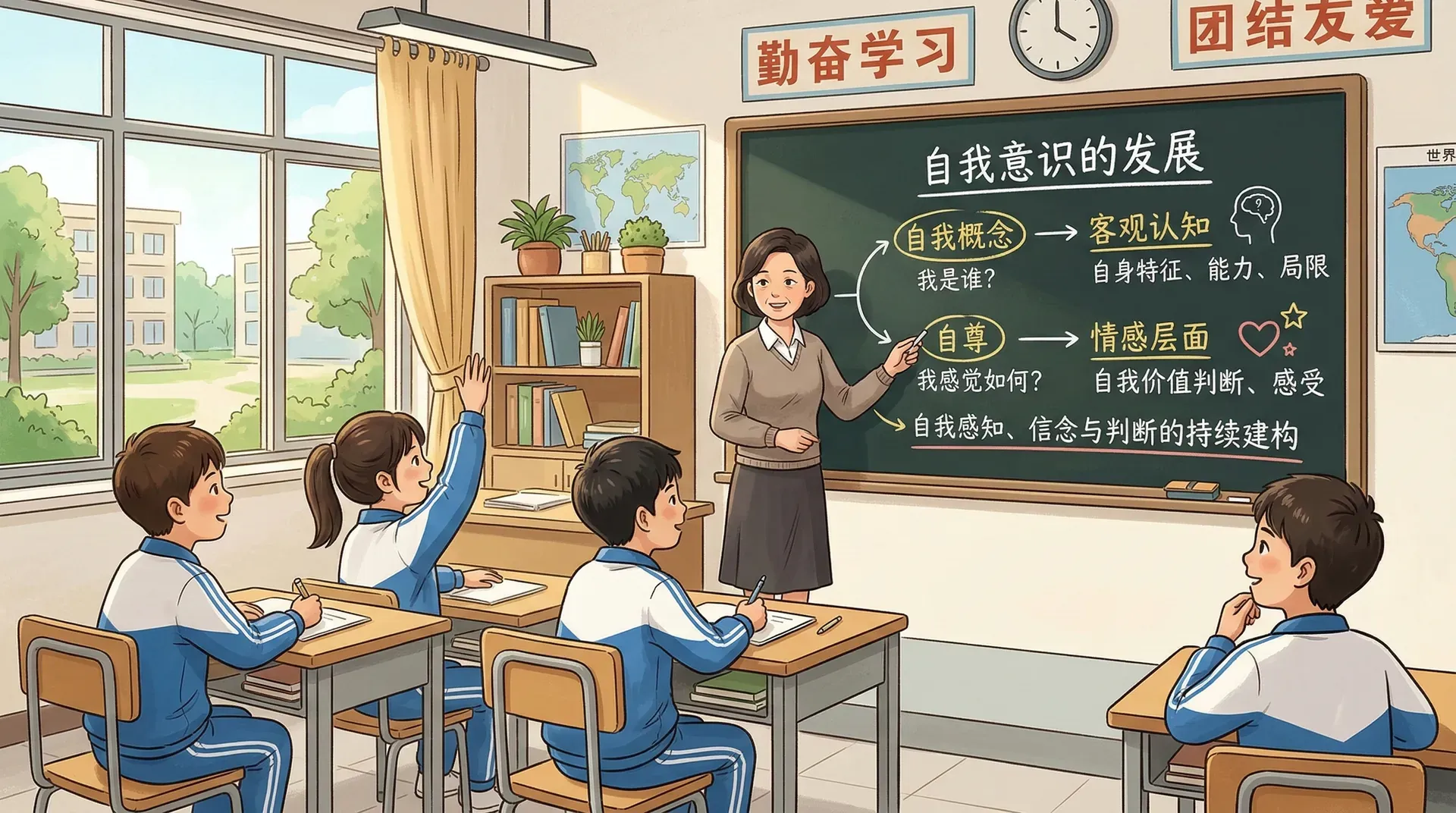 到了青春期,抽象思维的发展让自我认知变得更加复杂。青少年开始用稳定的心理特质来定义自己,而不只是外部的行为表现。自我意识的范围也从“我能做什么”扩展到“我是什么样的人”、“我在他人眼中是谁”、“我想成为怎样的人”。