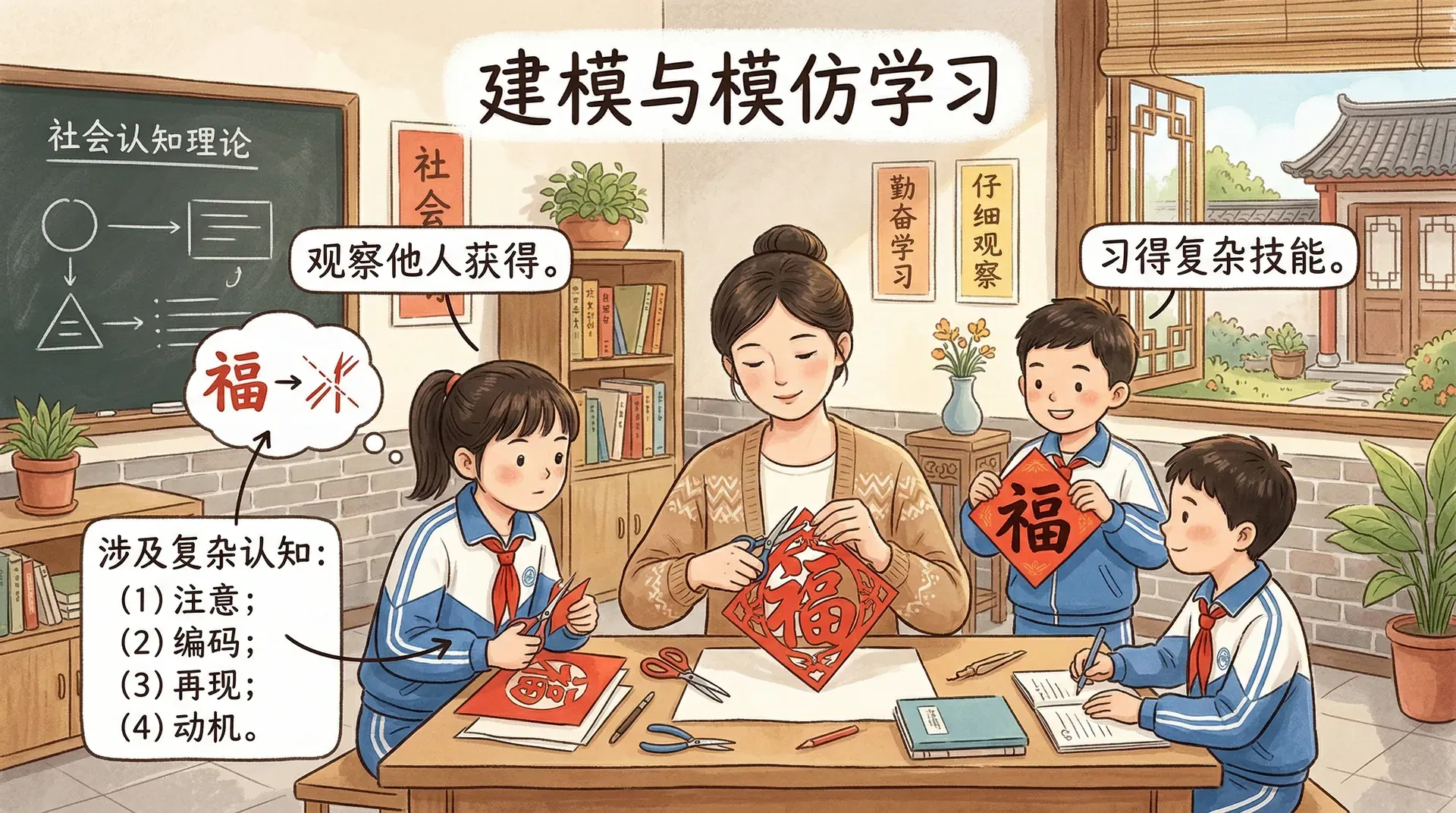 建模学习是社会认知理论的核心机制之一。它揭示了人类如何通过观察他人来获得新的知识、技能与行为方式。这一过程远比简单的模仿复杂,涉及注意力的分配、信息的编码与储存、行为的再现,以及内在动机的支撑。正是这种多层次的认知参与,使得建模学习成为人类习得复杂技能的重要途径。