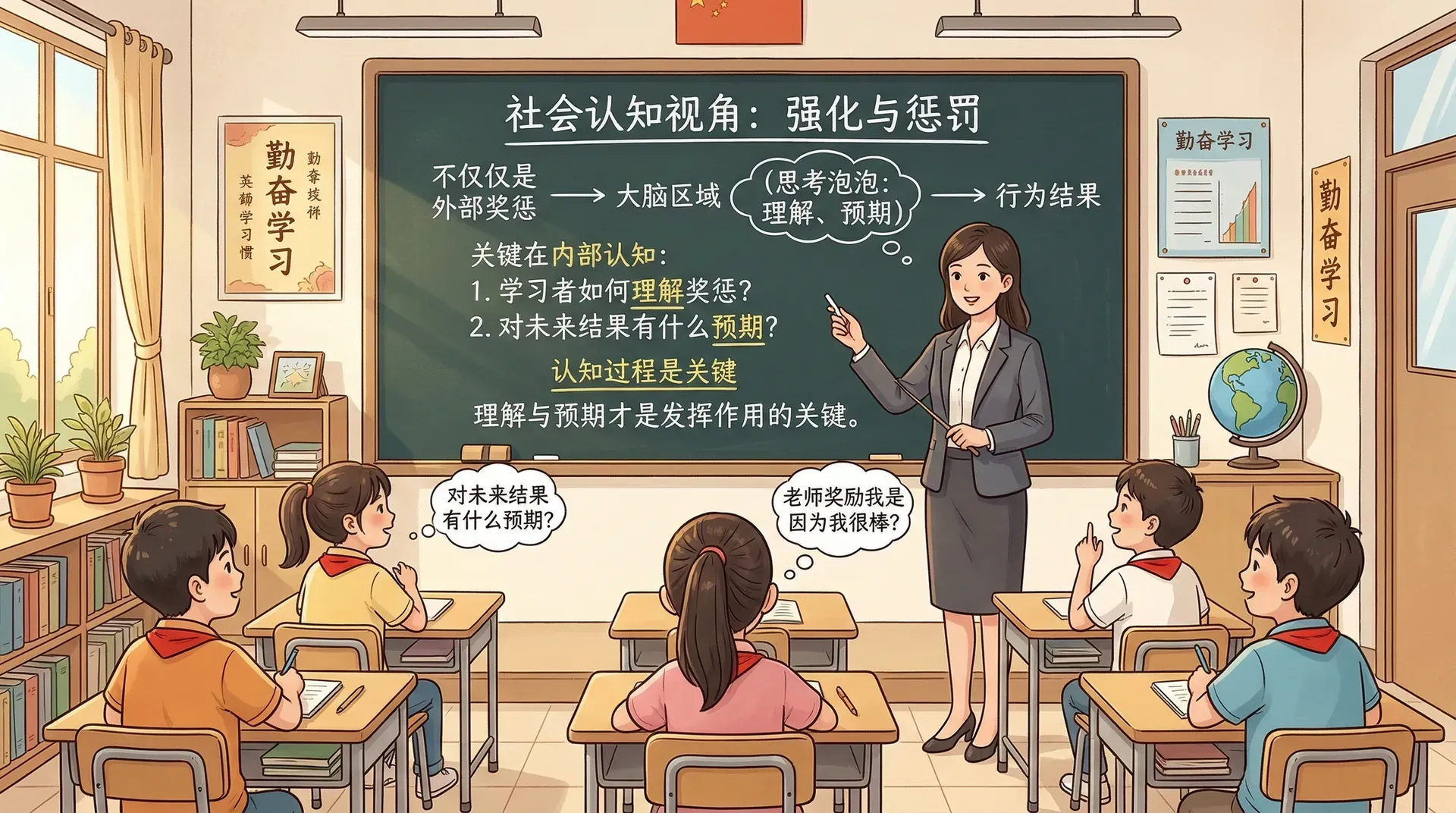 在社会认知学习理论中,强化和惩罚的作用机制比传统行为主义理论更加复杂。行为主义只关心外部奖惩对行为的直接影响,而社会认知理论则进一步追问:学习者如何理解这些奖惩?他们对未来结果有什么预期?这些内在的认知过程,才是决定强化与惩罚是否真正发挥作用的关键。