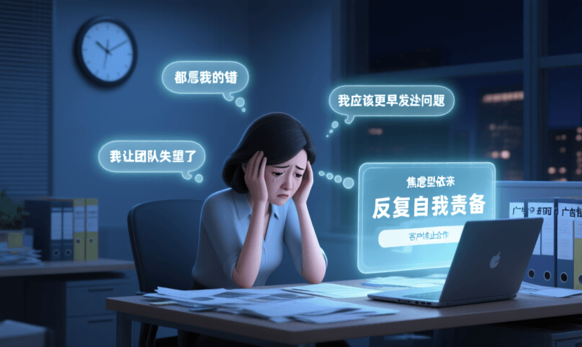 孙梅是北京一家广告公司的创意总监,公司最大客户突然终止合作,她作为项目负责人承受巨大压力。作为焦虑型依恋者,孙梅陷入反复自我责备:“都是我的错,我应该更早发现客户不满”、“我让整个团队失望了”。她晚上失眠,脑海中不断重播与客户的会议,试图找出哪里做错了。她频繁向同事倾诉,寻求安慰和保证,但这种反刍式应对并没帮助她找到解决方案。