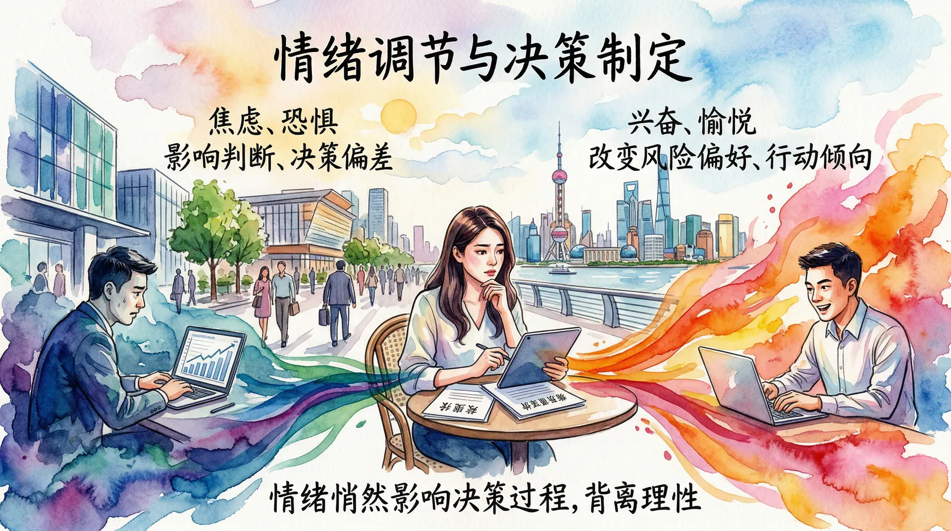 情绪调节是指个体通过有意识或无意识的方式,主动影响自己处于何种情绪状态、在何时体验到这些情绪,以及以何种方式感受和表达这些情绪的过程。这些策略涵盖对情境的重新评估、刻意分散注意力、压抑或适度表达情绪等多种形式。有效的情绪调节有助于个体增强自控力、减少冲动行为,从而切实提高决策质量。