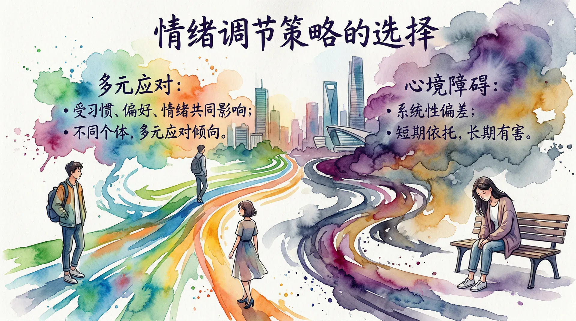 不同个体在面对情绪困境时,会倾向于选择不同的应对方式。近年来的研究越来越清楚地表明,情绪调节策略的选择并不是随机的,而是受到个体习惯、认知偏好和情绪状态的共同影响。在心境障碍群体中,这种选择倾向尤为明显,往往呈现出系统性的偏差。一些策略虽然在短期内让人感到有所依托,却在长期上加剧了情绪问题,这也是心境障碍难以自行恢复的重要原因之一。