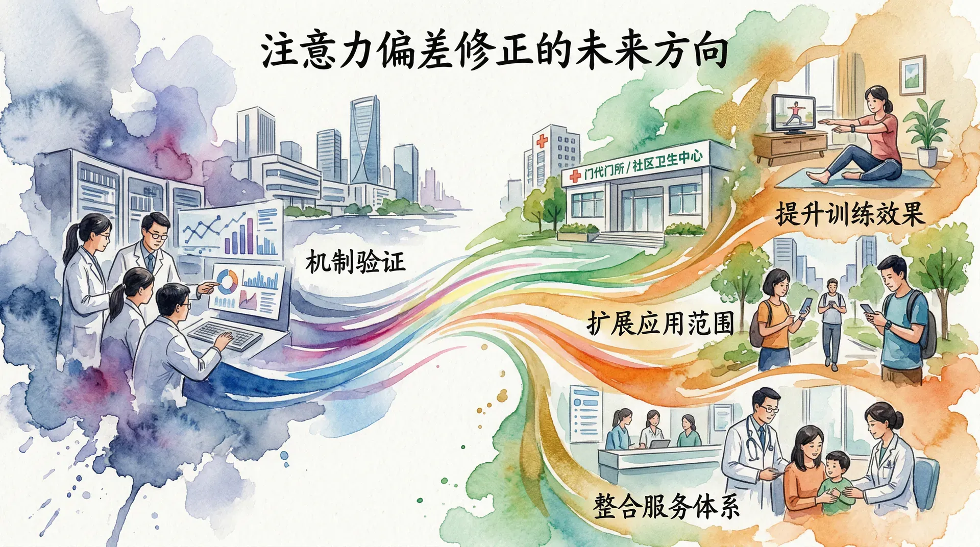 注意力偏差修正的大规模临床应用需要克服多方面的挑战。首先,需要建立标准化的临床实施规程,明确不同障碍类型对应的训练参数和评估指标。其次,需要进一步厘清注意力偏差修正与现有循证治疗方法之间的协同关系,探索将其整合至综合治疗方案中的最优路径。