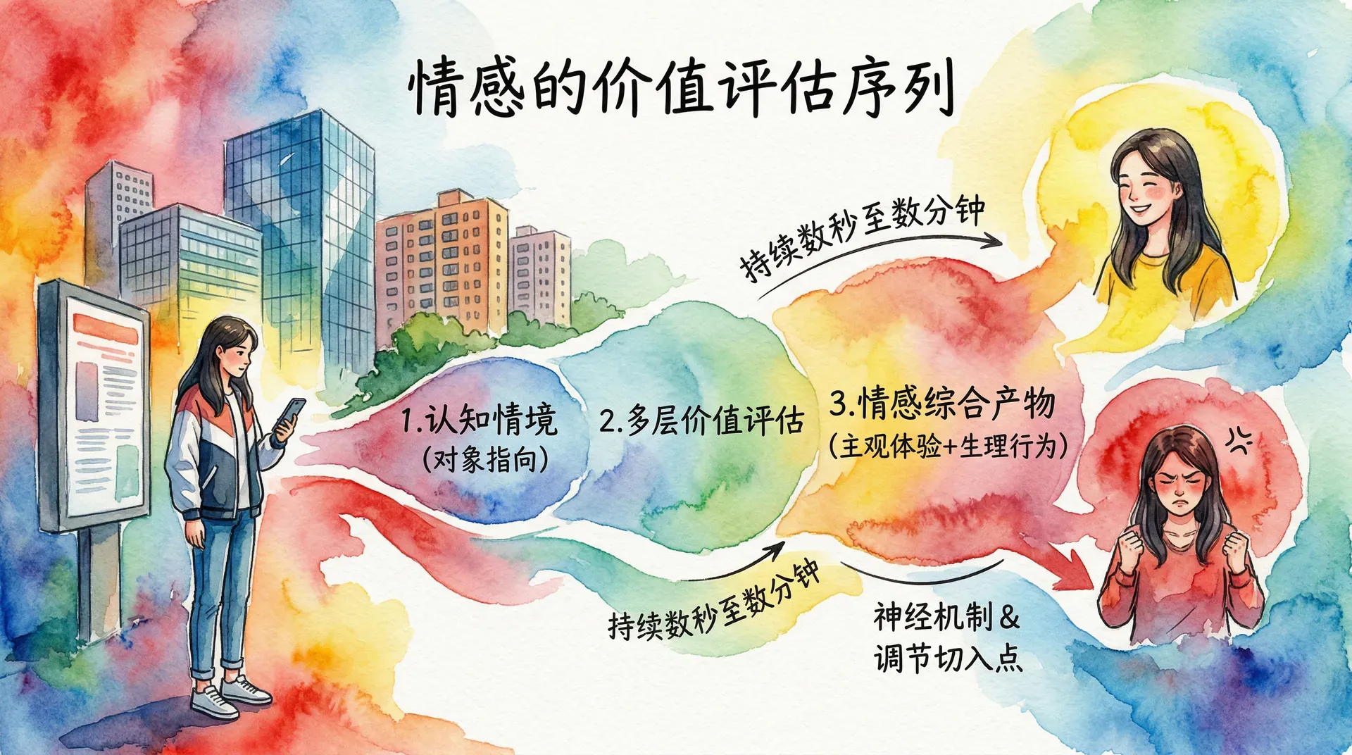 以一个日常场景为例。北京地铁10号线高峰期,车厢内人员密集,你站在靠近车门的位置。对面坐着一位看起来情绪低落的中年男子,他突然从随身包里取出一把折叠刀,开始在手中不停翻转把玩。这个场景会触发一系列层次分明的情感反应,清晰体现了价值评估三个层次的依次激活过程。