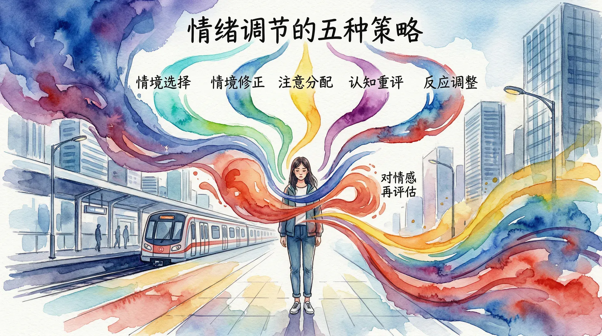 情感本身也会成为价值评估的对象。在上述地铁场景中,一个人可能意识到“我现在很害怕”,但同时又判断“在大庭广众之下表现出慌乱是不得体的”,于是主动采取措施压制外在的情感表达。这便是情绪调节的基本逻辑:一个价值评估序列产生情感,另一个价值评估序列对该情感本身进行再评估并施加影响。根据情绪调节策略对“感知—价值评估—行动”回路不同阶段的作用位点,研究者将其分为五种类型。