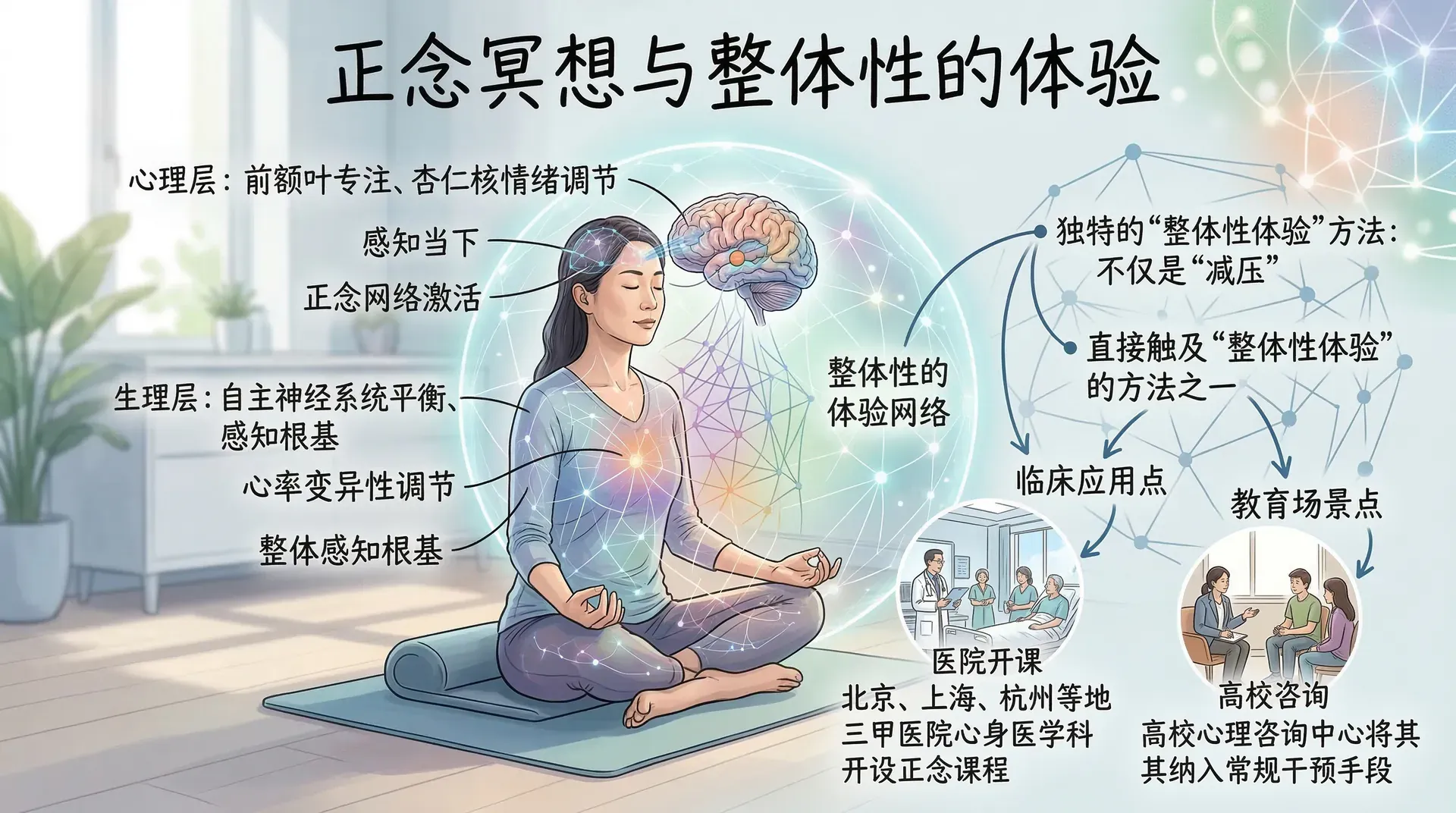 在现代心理健康实践中,正念冥想之所以被越来越多地引入临床与教育场景,并不只是因为它能“减压”。它真正独特的地方,在于它是少数几种能够直接触及“整体性体验”的方法之一。目前,北京、上海、杭州等地的一些三甲医院已在心身医学科开设正念课程,高校心理咨询中心也逐渐将其纳入常规干预手段。