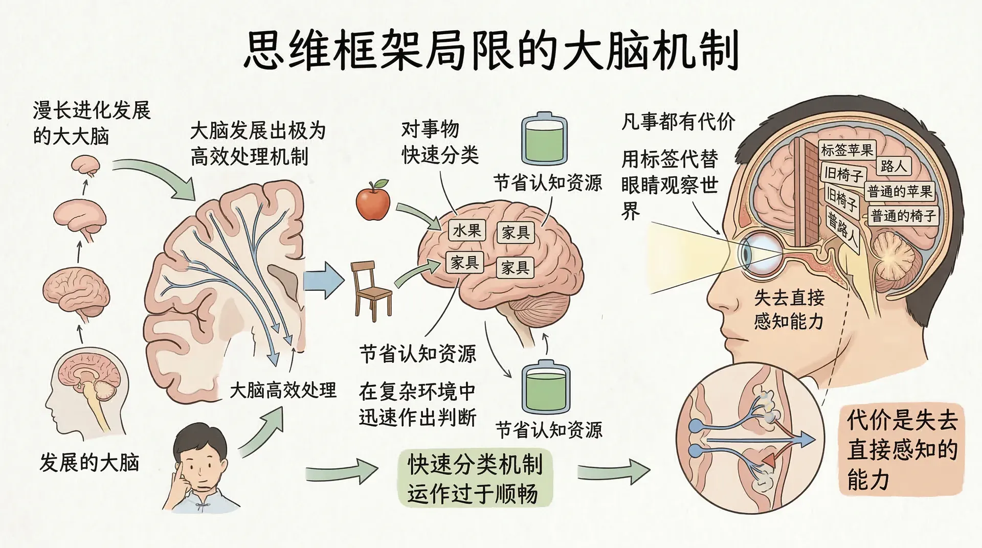 人类的大脑在漫长的进化过程中发展出一种极为高效的处理机制:对事物进行快速分类。这种机制帮助我们节省认知资源,在复杂的环境中迅速作出判断。然而,凡事都有代价。当这套机制运作得过于顺畅,我们便会在不知不觉间失去直接感知的能力,开始用“标签”代替“眼睛”来观察世界。