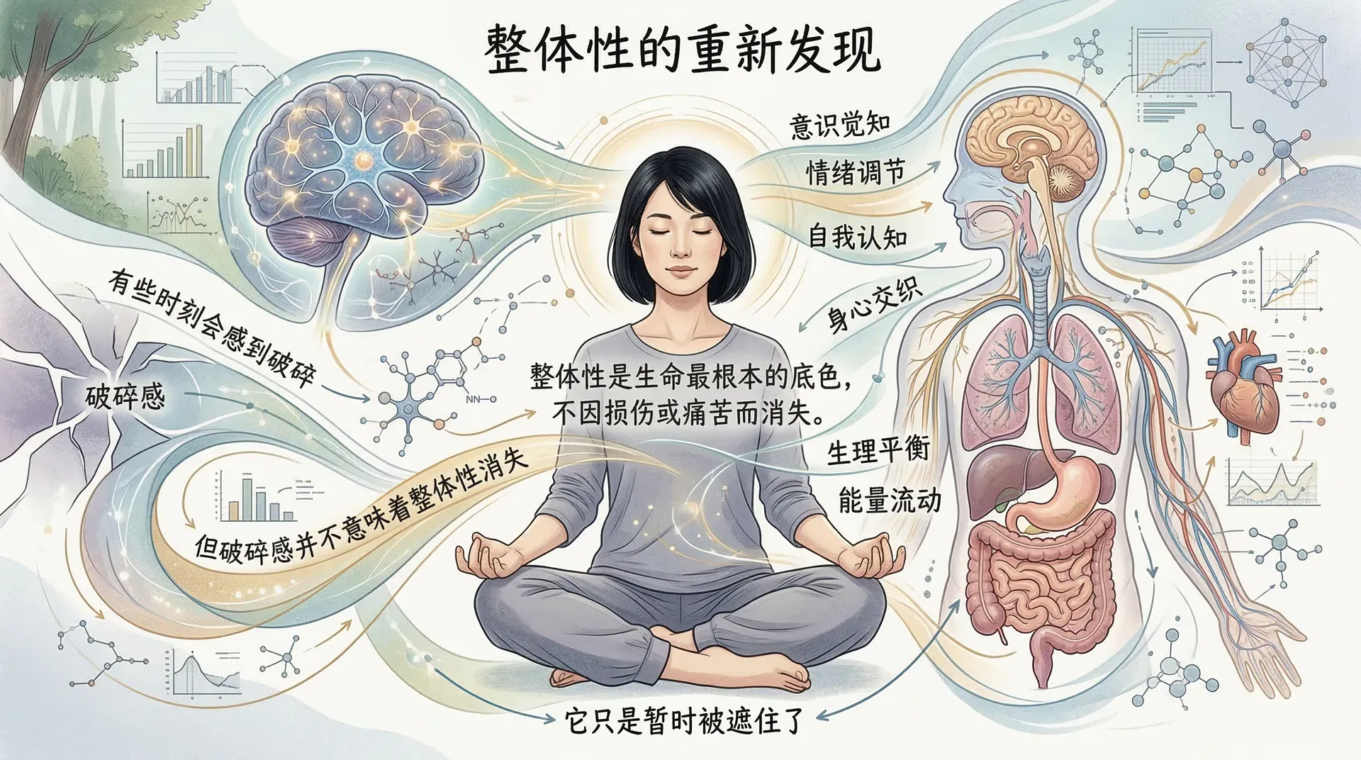 整体性是生命最根本的底色,它不因外在的损伤或内心的痛苦而消失。我们在某些时刻会感到支离破碎,但那种破碎感并不意味着整体性真的消失了——它只是暂时被遮住了。就像一块被积雪覆盖的地面,雪再厚,地面依然在那里。
