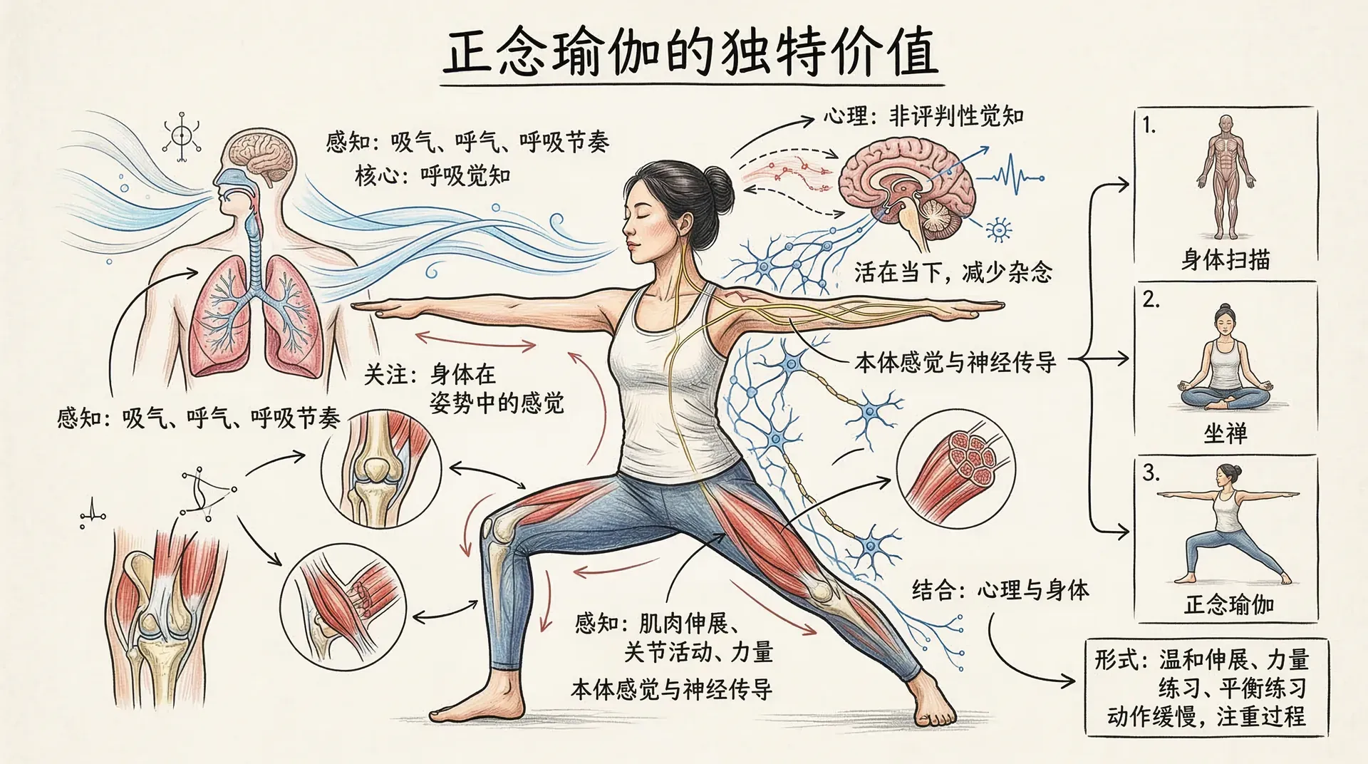 在正念减压疗法的框架下,瑜伽练习有几个核心要点值得注意: