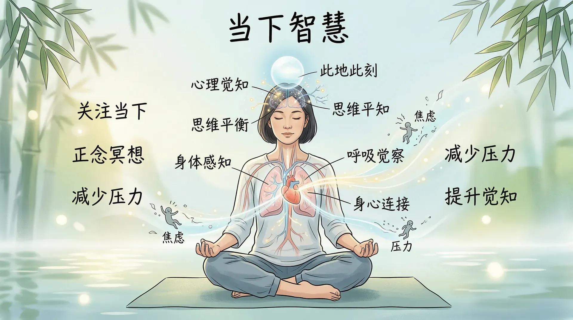 解析:正念冥想的本质是学会专注于当下这一刻,不是要清空大脑或控制思想,而是觉察当下正在发生的一切,包括自己的想法和感受,不加评判地观察它们。