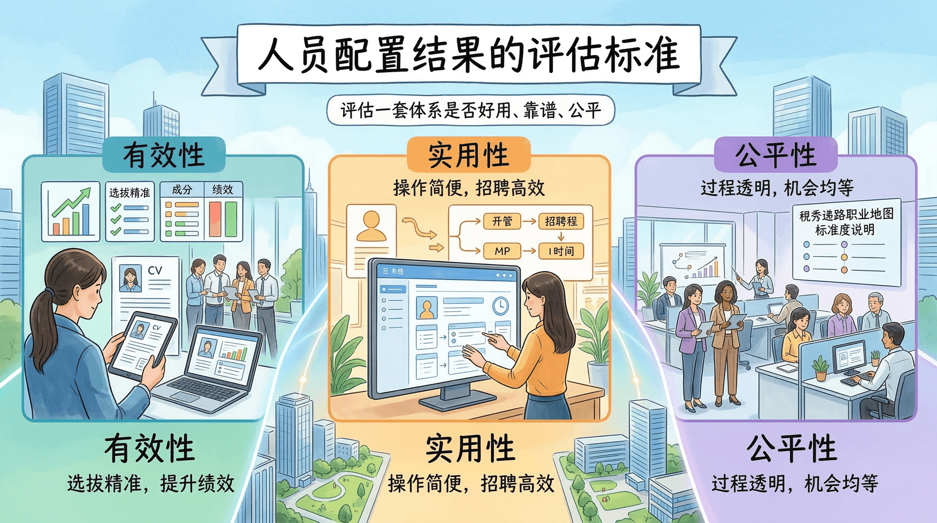 任何一套人员配置体系都需要被检验:它好不好用?选出来的人靠不靠谱?过程公不公平?围绕这三个问题,可以从有效性、实用性和公平性三个维度展开评估。