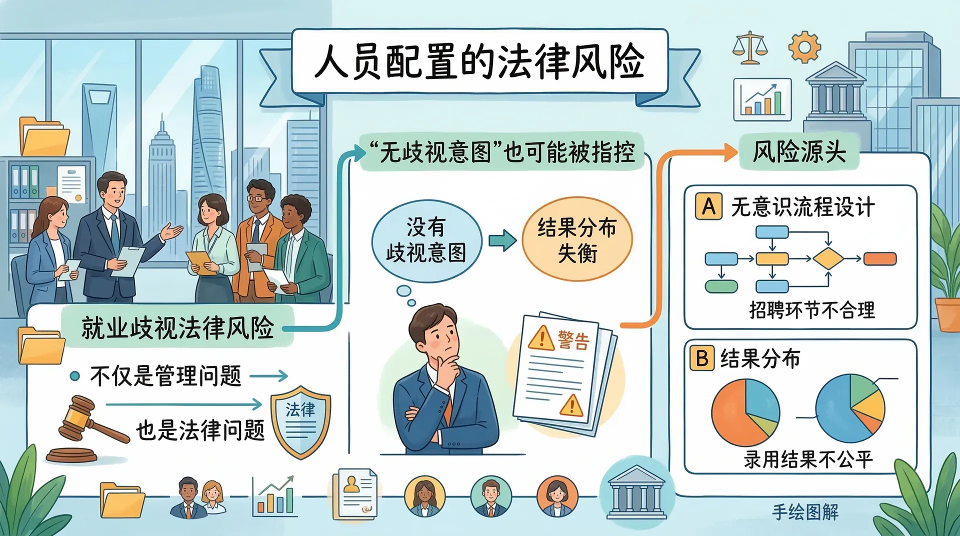 人员配置决策不只是一个管理问题,还是一个法律问题。就业歧视指控不会因为企业“没有歧视意图”而消失,很多时候,问题出在无意识的流程设计或结果分布上。