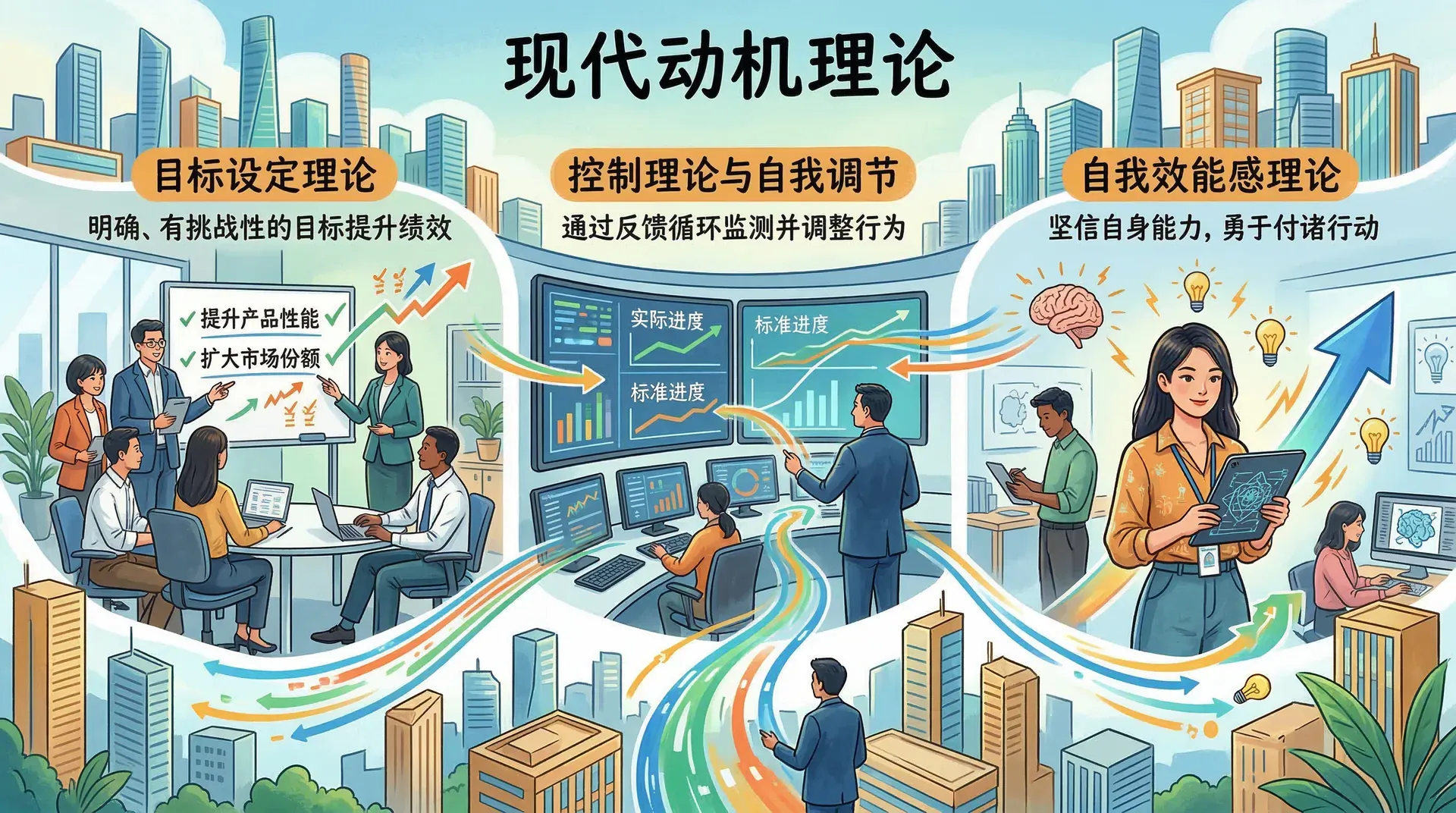 经典动机理论奠定了研究基础,现代动机理论则在此之上引入了更多认知和情境维度。目标设定理论将注意力集中在目标的特性如何影响绩效,控制理论与自我调节探讨了反馈循环在行为维持中的作用,自我效能感理论则深入个体对自身能力的主观评估,揭示了信念如何塑造行动。这些理论共同勾勒出当代组织心理学理解工作动机的主要轮廓。