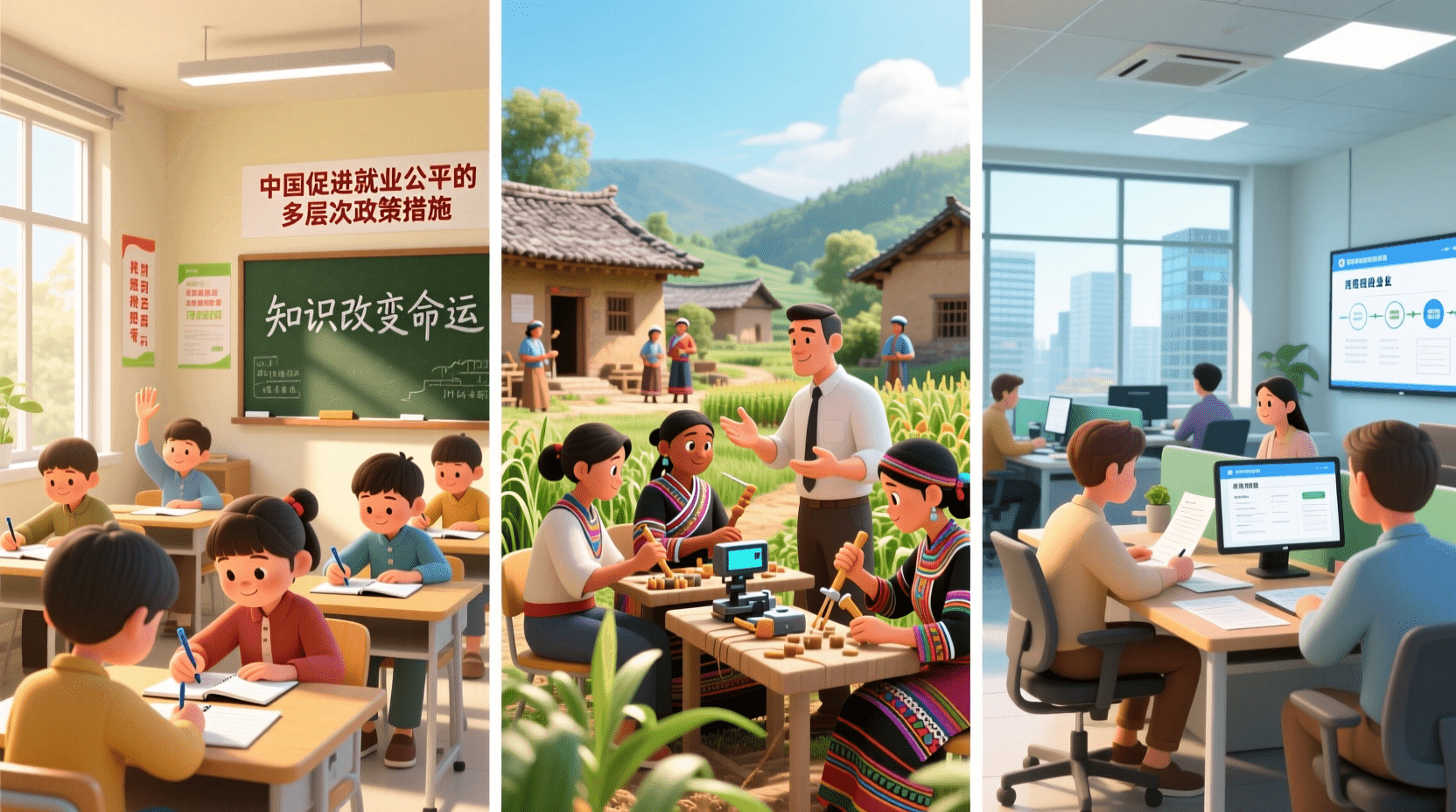 中国在促进就业公平方面有着独特的历史背景和政策框架。与西方国家的平权行动不同,中国更多地强调通过教育机会均等化、扶贫开发、民族区域自治等方式来促进社会公平。