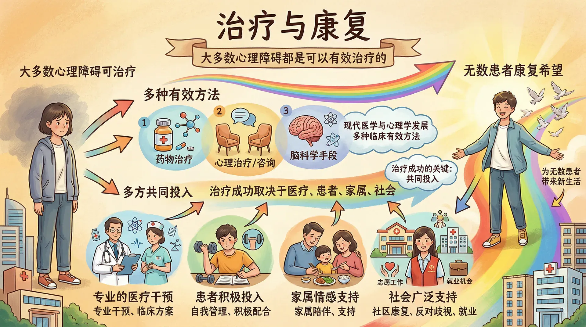 大多数心理障碍都是可以治疗的。通过正确的诊断和治疗,许多人能够完全康复或显著改善症状。