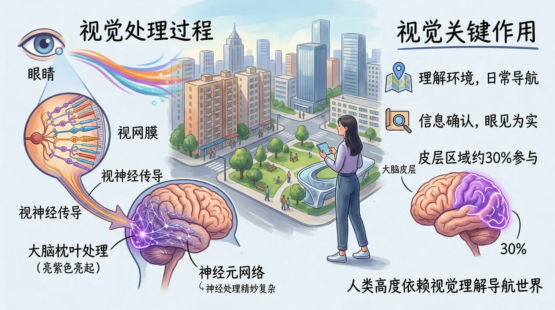 “眼见为实”——这句俗语体现了视觉在我们生活中的重要地位。人类高度依赖视觉来理解和导航这个世界,据估计,大脑皮层中约有30%的区域参与视觉信息的处理。但我们往往低估了视觉系统的复杂性。从光线进入眼睛到大脑形成完整的视觉体验,这个过程比想象的要精妙得多。