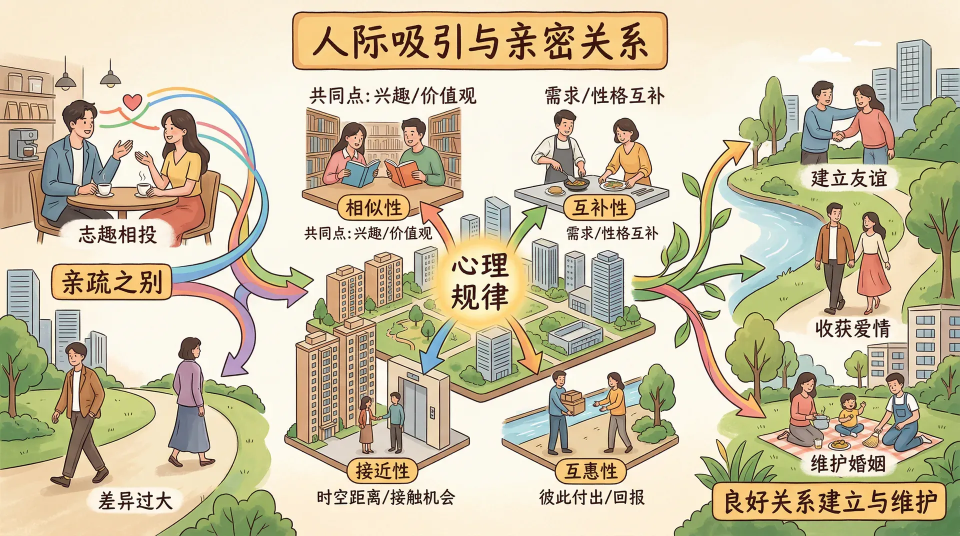 地理上的接近性也是产生吸引的重要条件。校园中,同宿舍、同班级的同学之间更容易发展出深厚的友谊,原因之一就在于频繁接触创造了了解彼此的机会。进入网络时代,“接近性”的含义有所拓展,微信群、网络游戏社区和兴趣论坛成为新型的“邻近空间”,让地理上相距遥远的人得以建立连接。