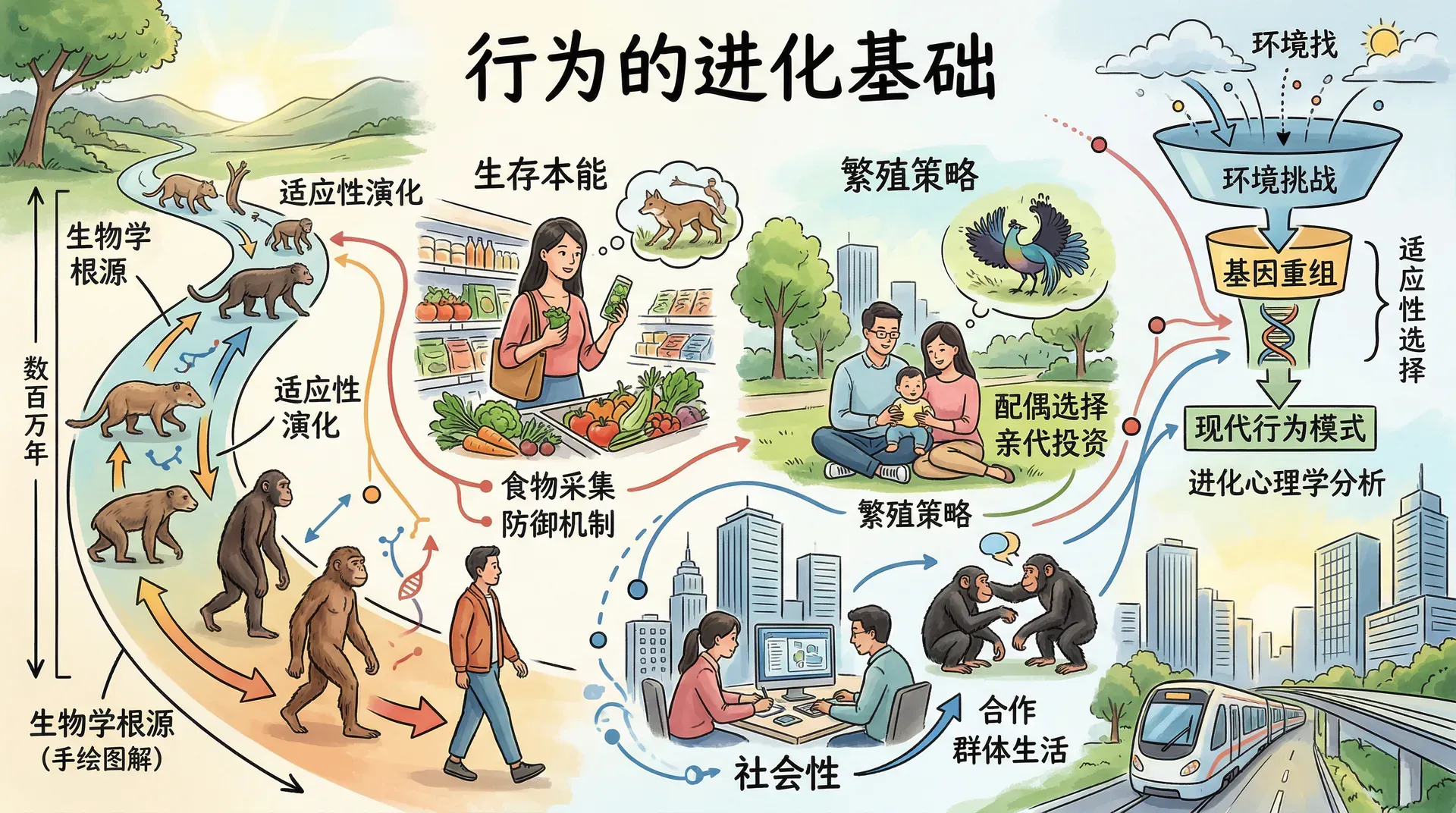 要全面理解行为的生物学根源,还需要将视野拉长至进化的时间尺度,思考数百万年的进化历程如何塑造了现代人类和动物的行为模式。进化心理学正是从适应性的角度出发,分析行为背后的进化逻辑,为理解人类行为的共性提供了独特的理论框架。