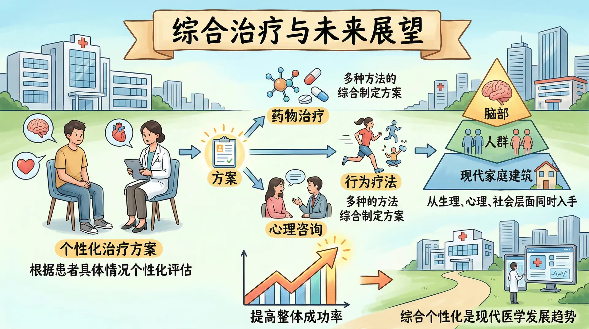 研究表明,综合治疗方法在预防复发方面效果显著,特别是对于抑郁症等容易复发的疾病,这种方法的优势在于能够从多个层面解决问题,提高治疗的整体成功率。
