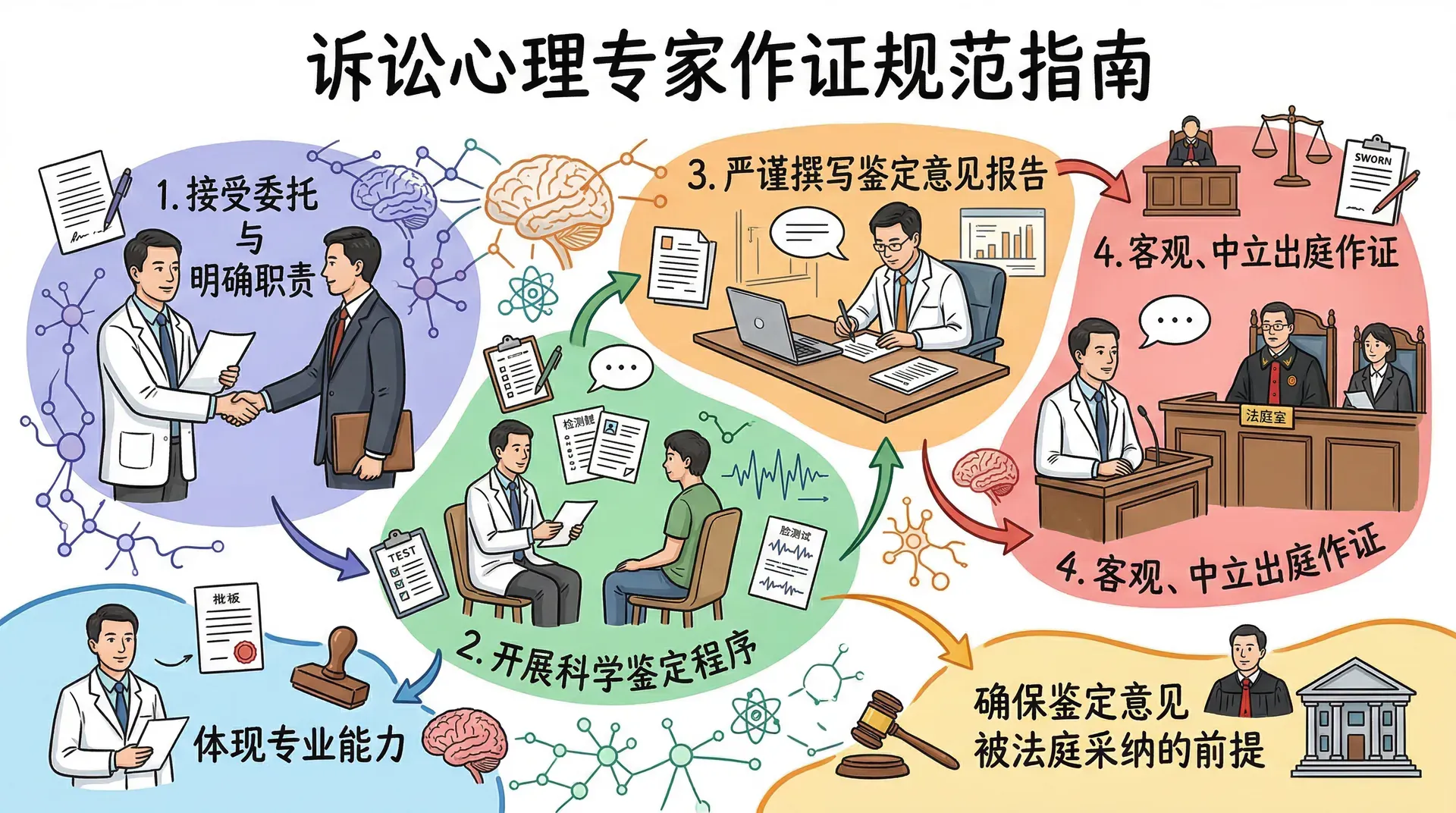从接受委托到出庭作证,法庭心理学专家在诉讼程序的各个环节都有明确的职责要求。了解这些规范,既是专业能力的体现,也是确保鉴定意见被法庭有效采纳的前提。