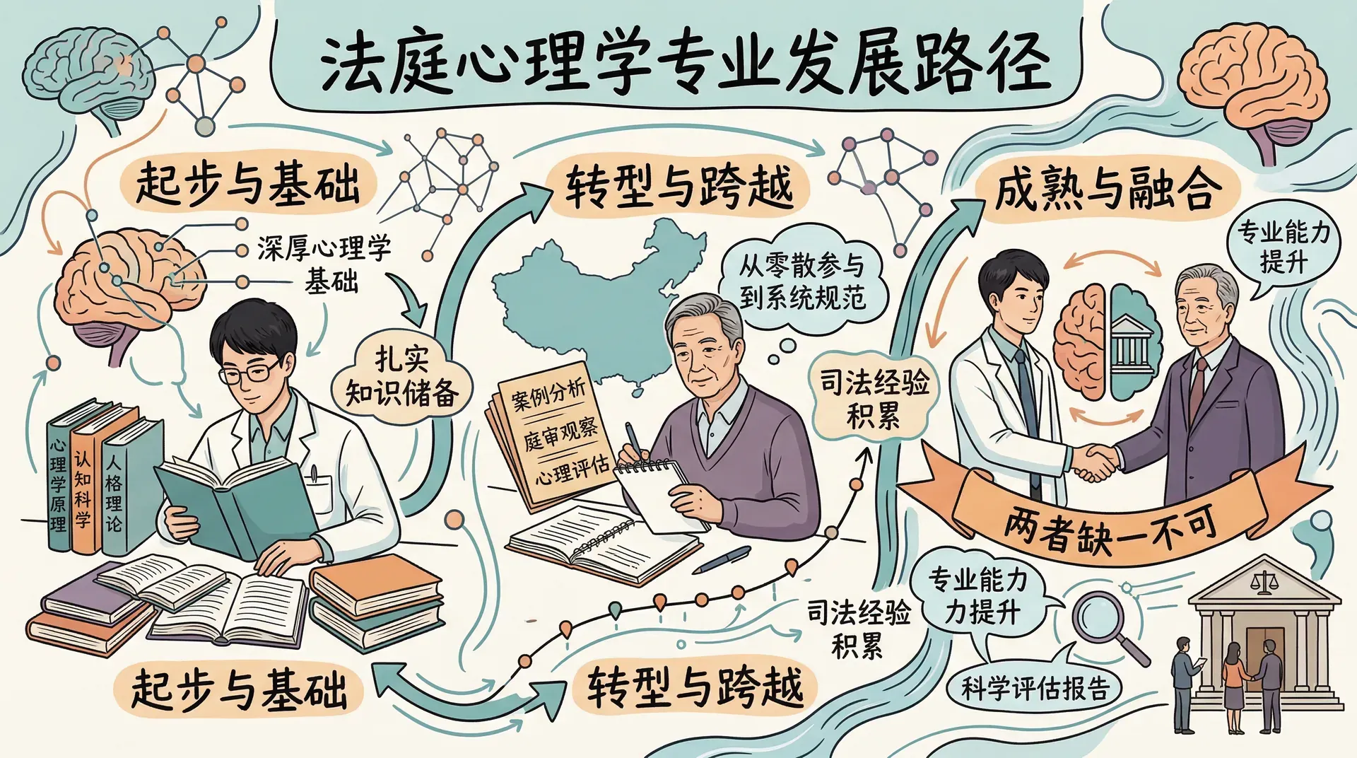 法庭心理学作为一个独立的专业领域,在我国经历了从零散参与到系统规范的发展历程。这一领域的专家既需要深厚的心理学基础,也需要在实践中逐步积累司法经验,两者缺一不可。