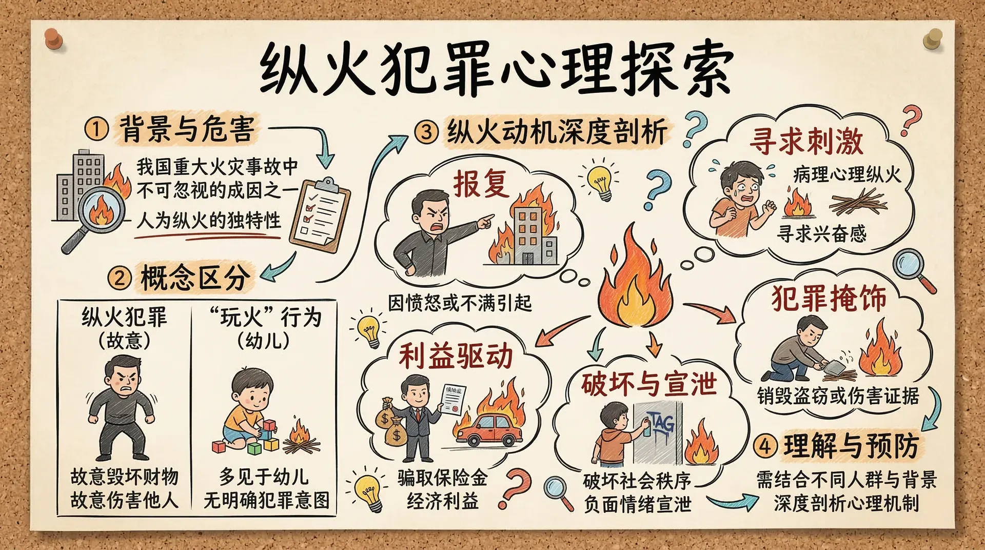 纵火犯罪在我国各类犯罪中占有独特的地位。每年重大火灾事故中,人为纵火始终是不可忽视的成因之一。纵火是指行为人出于故意,以放火的方式毁坏财物或伤害他人;而“玩火”行为更多见于幼儿群体,通常不涉及明确的犯罪意图。理解纵火行为的心理机制,需要区分不同的犯罪动机和人群背景。
