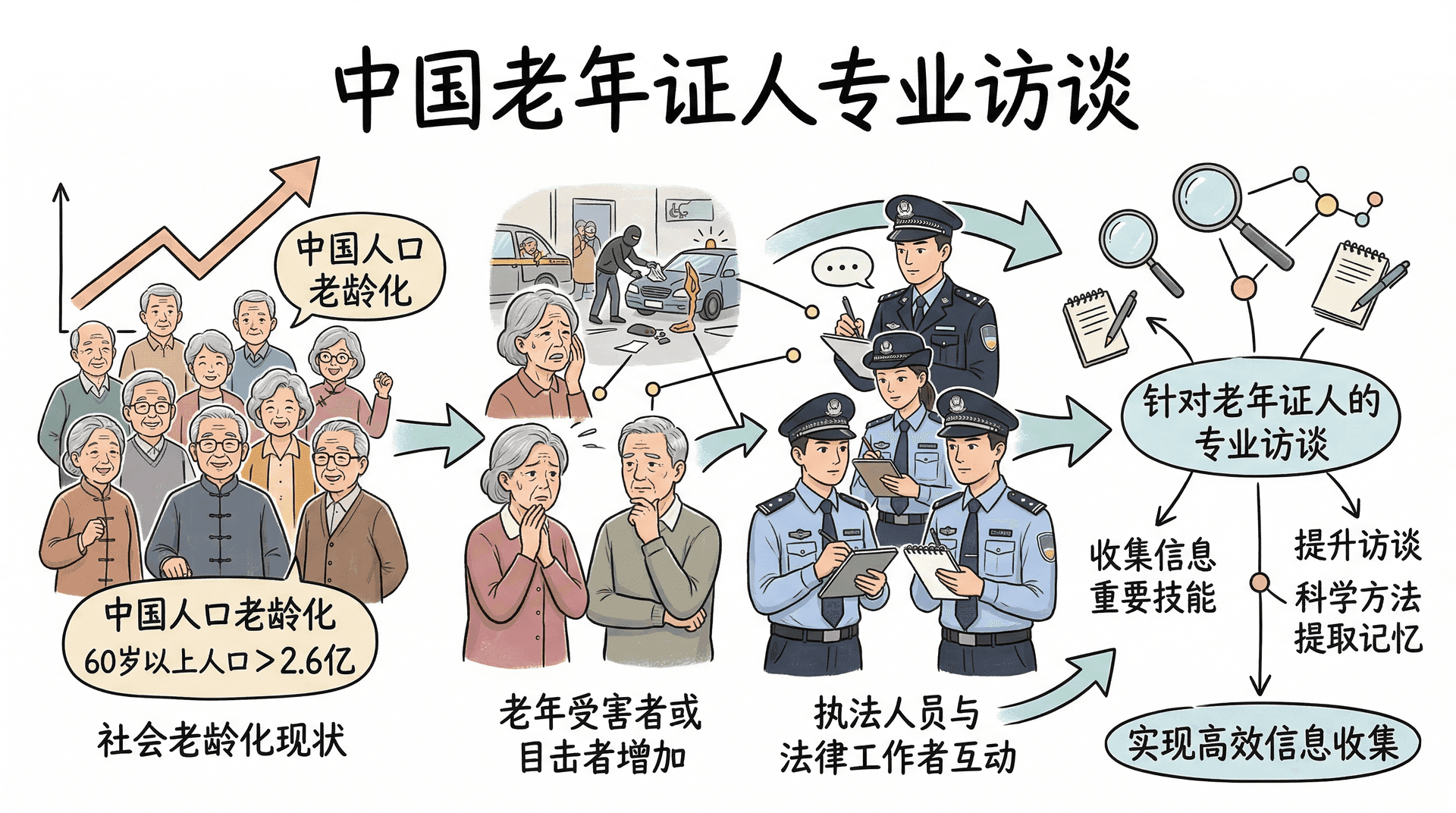 中国人口老龄化趋势明显,目前60岁以上人口已超过2.6亿。越来越多的老年人成为犯罪的受害者或目击证人,针对老年证人的专业访谈需求也日益迫切。从老年人处收集信息,已经成为执法人员和法律工作者必须具备的技能之一。
