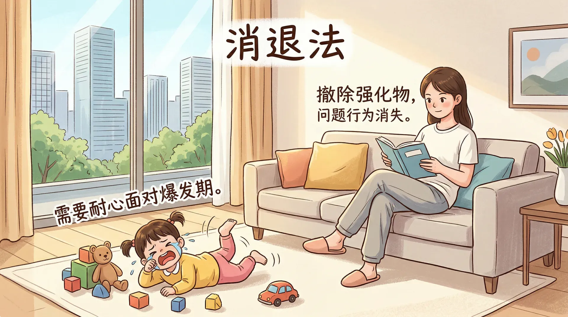 明白了这个机制,消退的方向就清晰了:撤除强化物,也就是不再给予任何形式的回应,无论是玩具、批评还是眼神接触。
