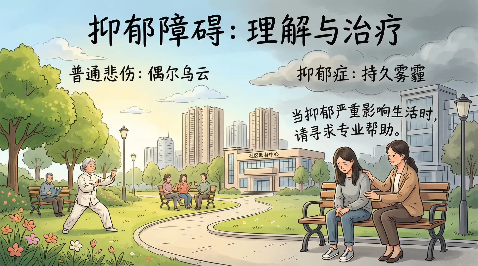 抑郁症与普通的悲伤情绪有着本质的区别。普通的悲伤是生活中偶尔飘过的乌云,而抑郁症就像是笼罩天空的厚重雾霾,让人看不到阳光,也感受不到温暖。抑郁症是一种更加极端、更加持久的情绪状态,不会因为愉快的事情而消散,也不会随着时间的流逝自然好转。当抑郁严重到影响正常生活时,就需要寻求专业帮助。