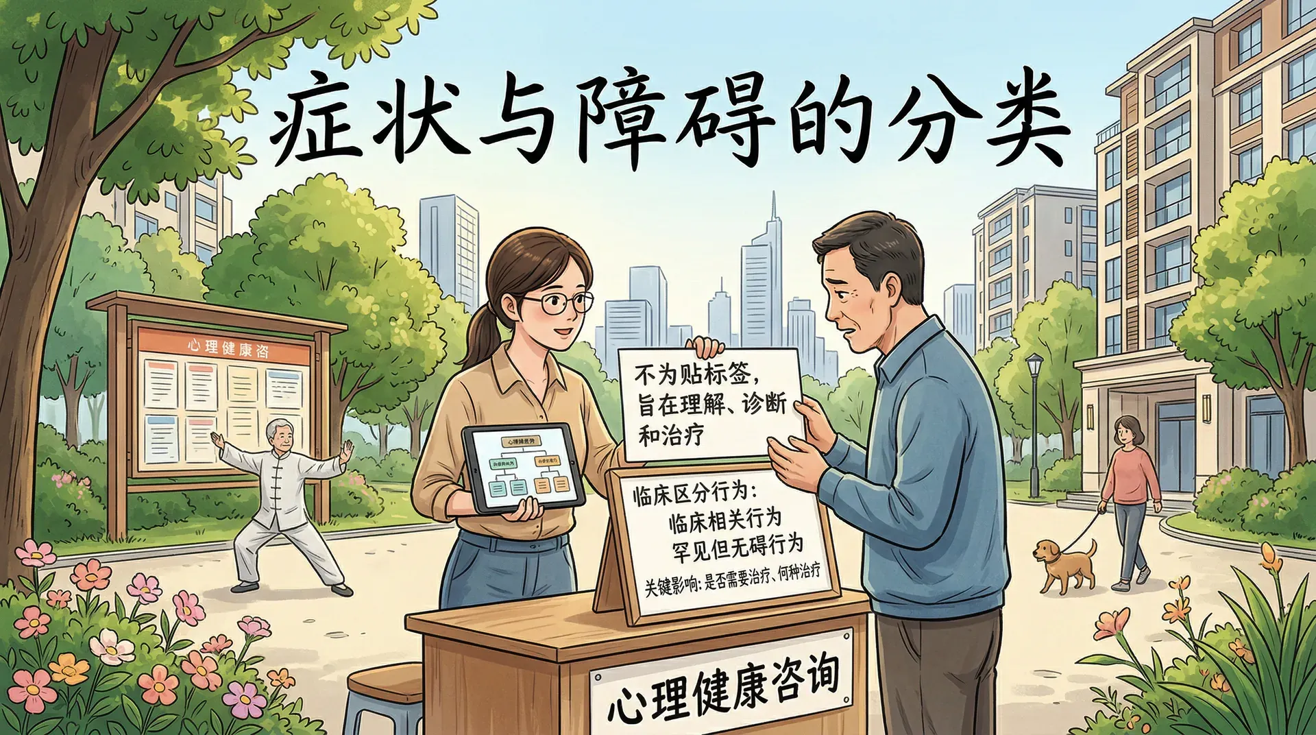 精神障碍诊断与统计手册为临床工作者提供了诊断心理障碍的参考框架,其核心原则是:症状必须导致显著的痛苦或功能损害,才能被认定为需要干预的心理障碍。