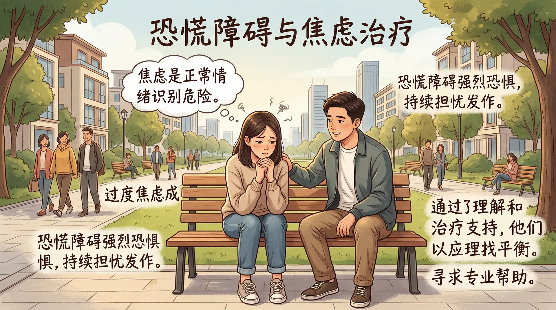焦虑是一种正常的情绪反应,能帮助我们识别危险、做好准备。但当焦虑变得过度、持续,并影响到正常生活时,就可能发展成焦虑障碍。焦虑障碍包括多种类型,其中恐慌障碍是特别令人困扰的一种。它的特点是反复出现毫无预兆的强烈恐惧感,让患者陷入对下一次发作的持续担忧之中。