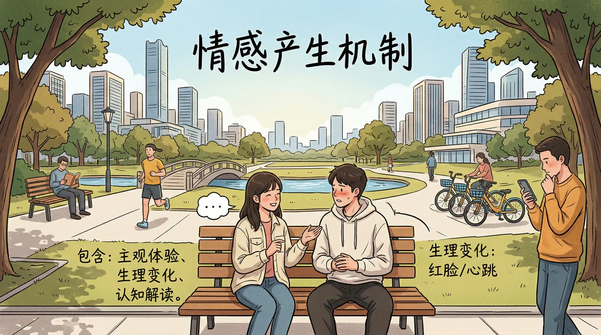 在深入理解这些理论之前,有必要区分两个常被混淆的概念:情绪与情感。情绪通常是指较为短暂、与具体事件直接相关的心理状态,比如看到一道美食瞬间涌起的食欲,或者听到坏消息时的瞬间沮丧。情感则更为持久,具有一定的稳定性,是个体对人、事、物长期形成的态度体验,比如对家乡的热爱,对某位老师长久的感激。两者之间存在密切联系——情感往往由反复的情绪体验积累而成,而情感的存在又会左右情绪的触发方式。