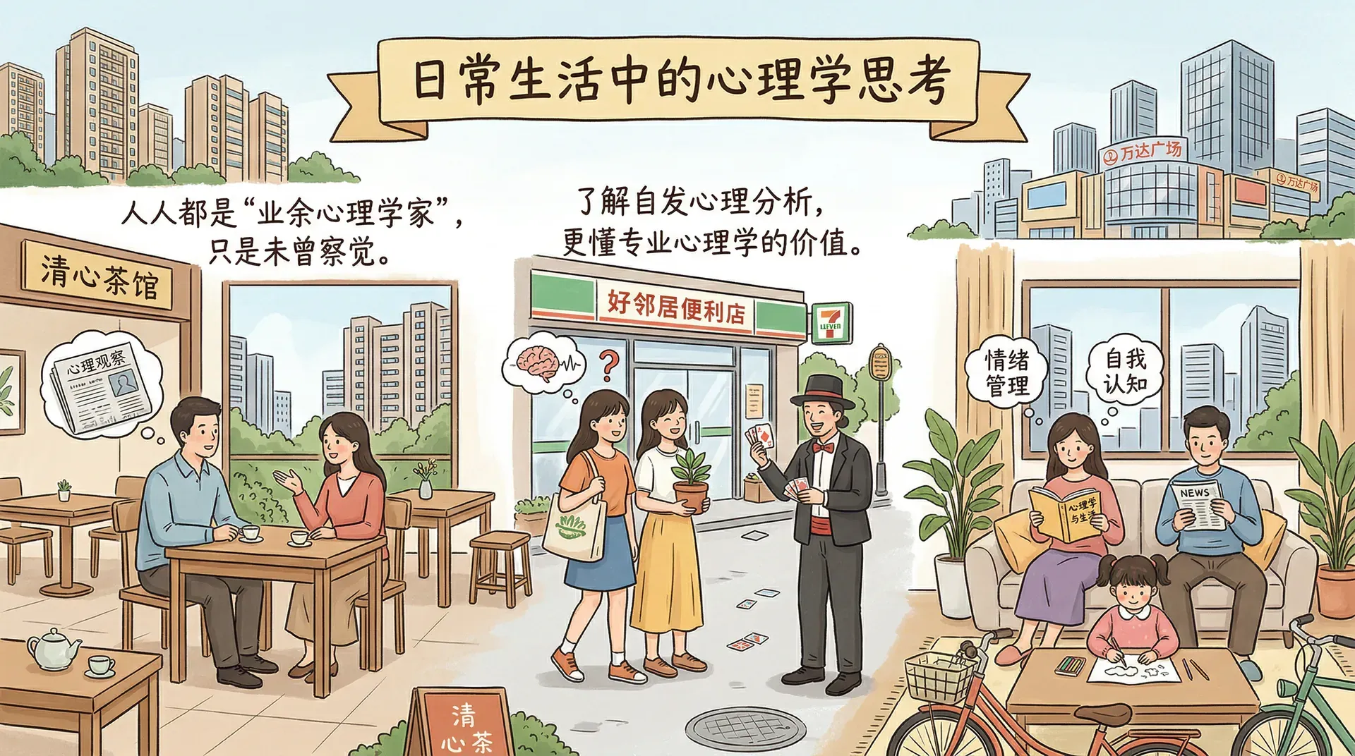 很多人误以为心理学家能读心,或者认为心理学只是用来治疗精神疾病的。实际上,心理学的覆盖范围广阔得多——它运用科学方法来理解人类的行为和思维过程,试图回答那些困扰我们已久的问题:人为什么会这样?我们的想法和感受从何而来?不同的人面对同一处境,为何反应大相径庭?