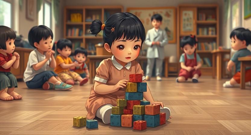 小雅对日常变化感到恐惧,包括陌生人出现。她不与其他孩子接触,满足于独自进行重复游戏。与其他孩子在一起时很少参与互动,不模仿他们的动作。