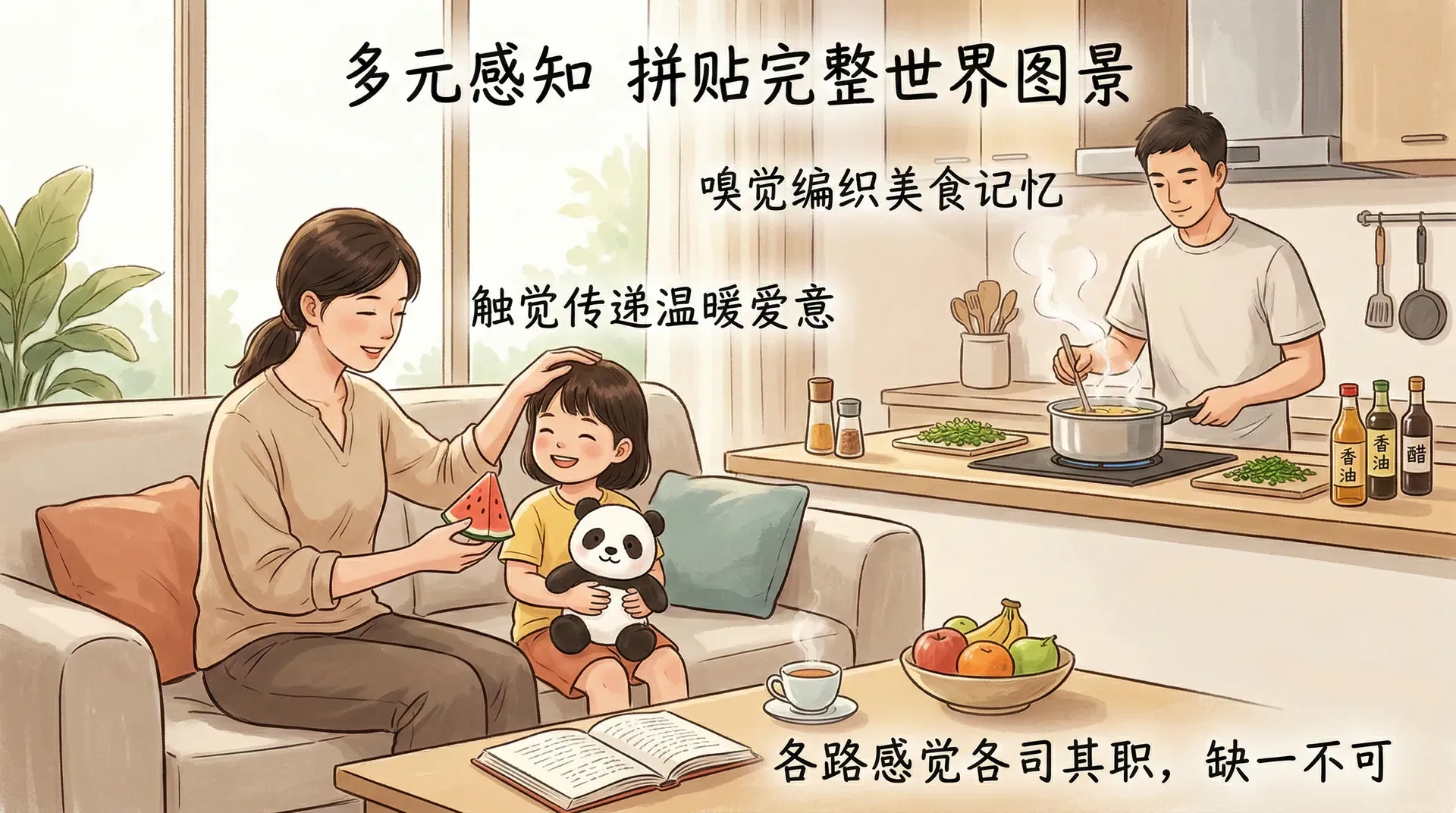 视觉和听觉虽然是研究最为深入的两个感觉通道,但人类完整的感觉系统远不止这两种。嗅觉、味觉、皮肤感觉、疼痛以及感知身体状态的内部感觉,共同构成了感知世界的完整图景。这些感觉彼此配合,在不同情境下各司其职,缺一不可。