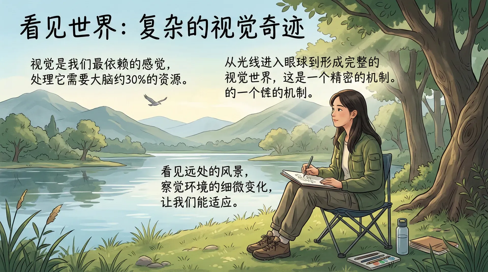 视觉是人类最复杂、最依赖的感觉通道,占据了大脑皮层约30%的处理资源。良好的视觉能力帮助人发现远处的目标或危险,察觉环境的细微变化并及时调整行为。从简单的光线进入眼球,到大脑中形成完整的视觉世界,这一过程涉及从眼球结构到神经通路的一系列精密机制。