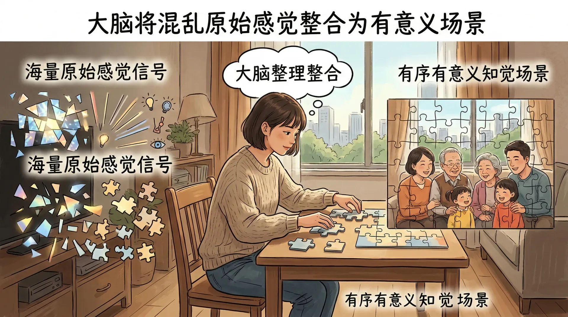感知是理解和把握外部世界各种物体和事件的整体过程,涵盖感受、理解、识别刺激并为行为反应做准备。感知并非单纯被动地接收信息,而是一个主动建构的过程——大脑不断将零散的感官输入整合为有意义的完整体验。
