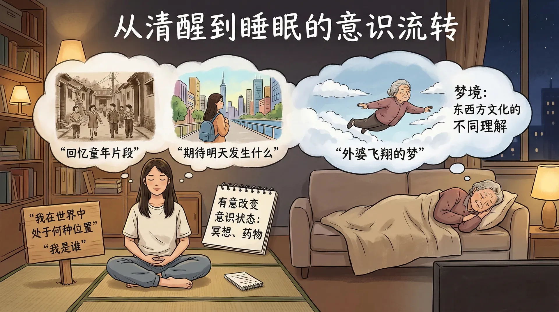 在几乎所有的文化中,都有人对日常的普通意识感到不满足,并主动寻求方法去超越熟悉的意识边界。催眠和冥想是两种最受研究者关注的意识转变途径——一种通过他人引导改变个体的感知与反应,另一种则依靠自身练习达到深度的内在宁静。