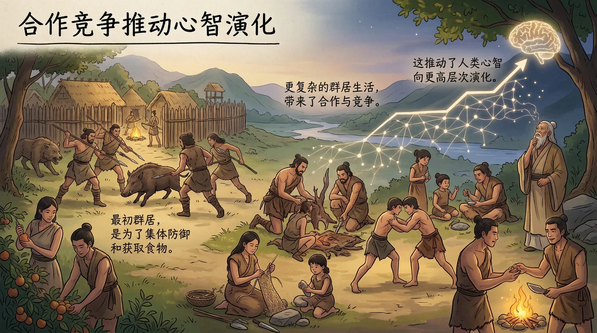 自然选择偏爱那些能够思考、计划,并在脑海中构建出不同行动方案的个体——这种预演现实的能力,既能帮助他们维系与亲属的联系,也能让他们在与对手的竞争中占据优势。