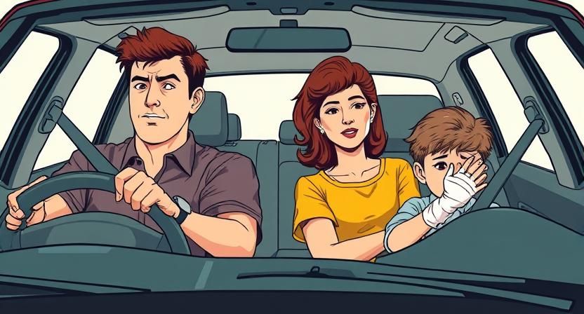 一个男孩详细描述道:“我哥哥把我推到地下室的木头堆里,我的手指就被夹住了。然后我们开车去医院,我爸爸、妈妈和哥哥都在车里,因为医院很远。医生给我的手指包了绷带。”