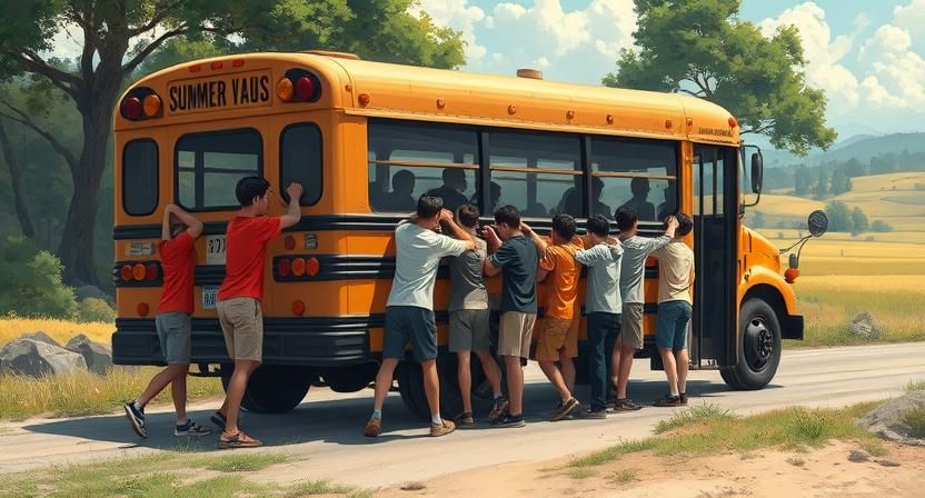 回到那个夏令营实验。研究者很聪明,故意制造了一些需要两队合作的情况。比如水管坏了,得大家一起修;想看电影,但租金太贵,需要两队凑钱;还有一次郊游时,车子"坏"了,需要所有人一起推。 神奇的事发生了。为了解决这些问题,两队孩子开始合作。慢慢地,大家又能一起吃饭了,晚上围着篝火聊天也不分你我了。原来的敌意一下子消失了很多。最后要回家时,孩子们主动提出要坐一辆车,路上也不再分队坐了。