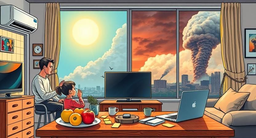 尽管近年来经济衰退的阴霾依然笼罩,但对于西方国家的大多数人来说,生活依然美好。今天,一个普通的北美人享受着过去皇室都无法想象的奢华:热水淋浴、抽水马桶、中央空调、微波炉、喷气式旅行、冬日的新鲜水果、大屏幕数字电视、电子邮件,甚至是便利贴。然而,在舒适便利的晴朗天空之外,环境灾难的乌云正在聚集。