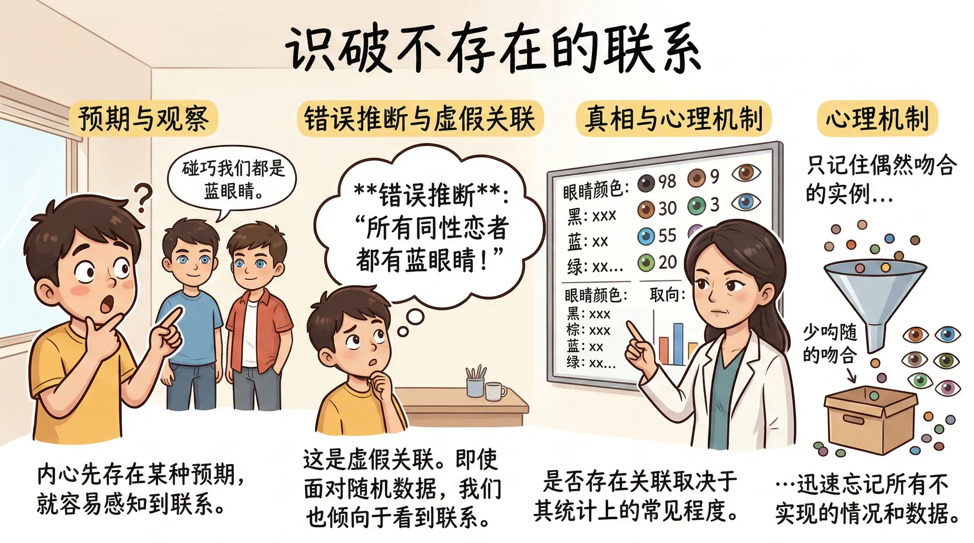临床实践中,一个常被忽视的认知偏误叫作“虚假关联”。当我们内心先存在某种预期,就会不自觉地在两件本没有关系的事物之间发现联系。这种偏误不仅存在于普通人身上,同样困扰着受过专业训练的临床工作者。