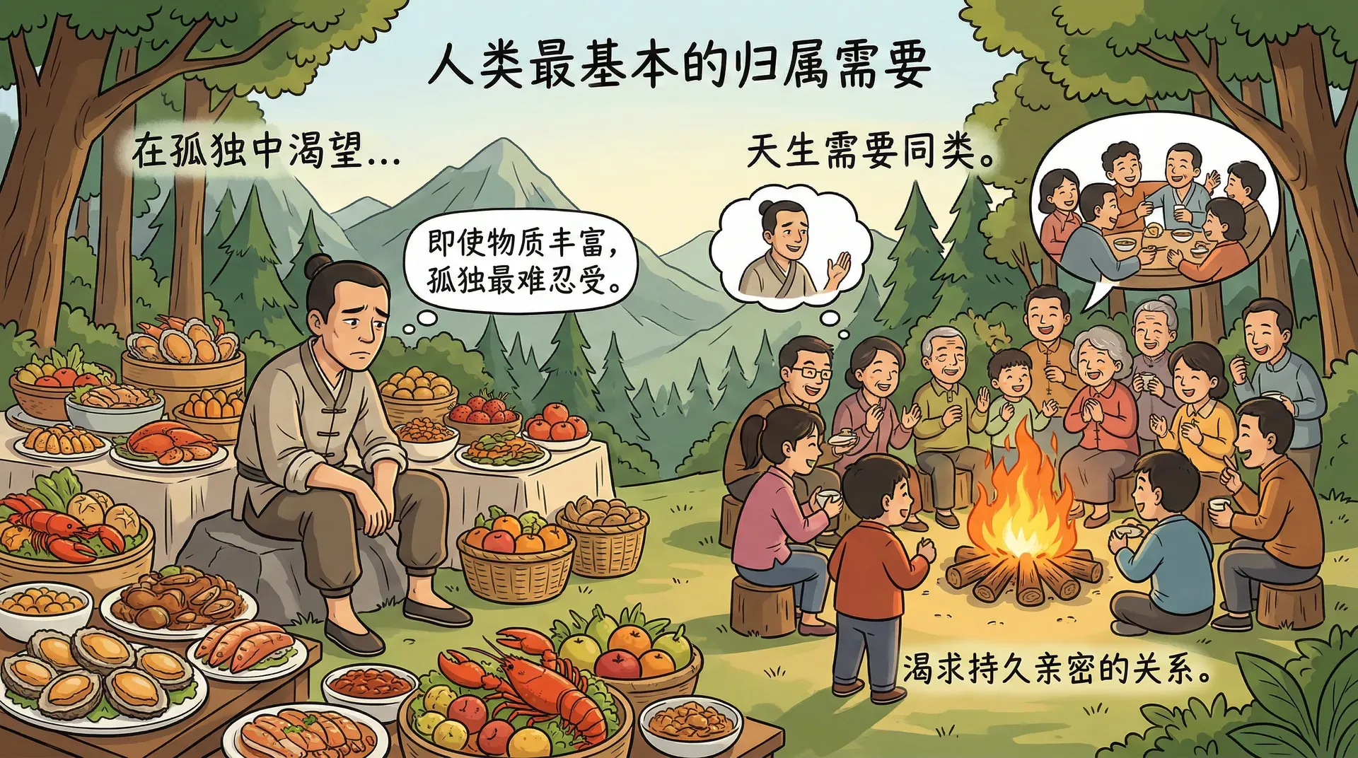 把一个人独自关在深山老林里,哪怕山珍海味应有尽有,他最想要的还是能有个人说说话。这不是矫情,而是因为我们天生就离不开同类。对归属感的渴望,就像饿了要吃饭、渴了要喝水一样自然。心理学家鲍迈斯特和利里提出了“归属需要理论”,认为人类具有与他人建立持久、亲密关系的基本动机,这种需要不仅影响情感状态,更直接关系到生存和繁衍。